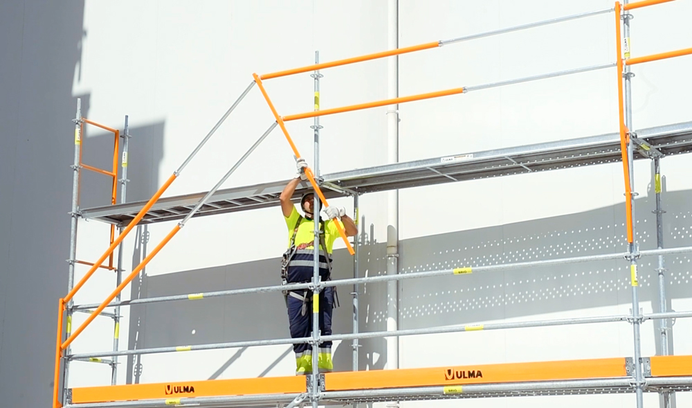 - Muntaketa baranda babes kolektiborako. Beheko mailatik muntatuta eta goiko mailara igotzeko unean erortzeko arriskutik babestea.Segurtasun oina EN795 arauaren arabera egiaztatuta (ez erortzeko babesa ainguraketarako gailuetan).