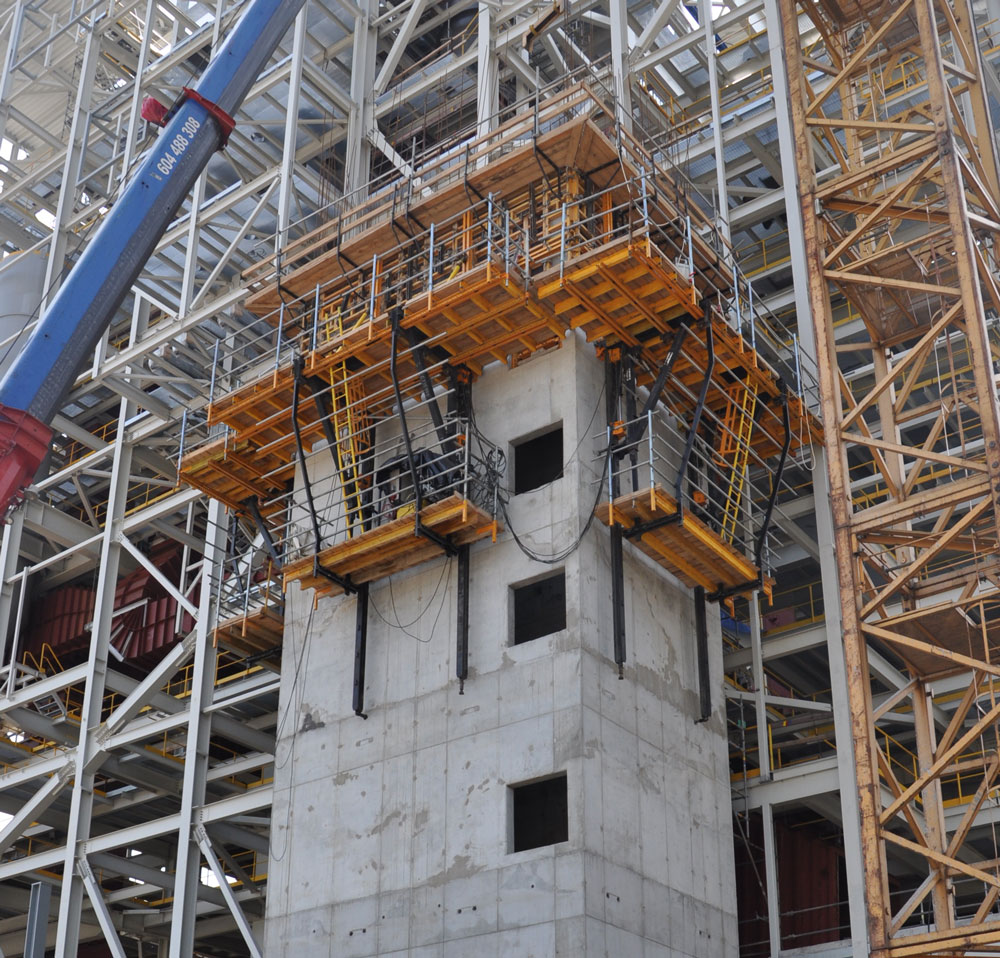 Egitura MK profilen bitartez eratzen da. Hainbat geometria har ditzake, bai eta enkofratua atzera emateko sistema bat baino gehiago ere (orgak edo zintzaldurako egiturak). Obrako elementu lagungarriei eusteko egiturak ere muntatu daitezke plataforma horiekin, esaterako hormigoia botatzeko makinei eta garabi txikiei eusteko egiturak.