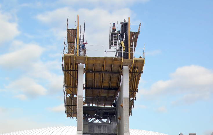 - Euskarri balantzina estribuarekin: Orokorrean Obra Zibilean erabiltzen da, baita pilare eta hormen arteko hutsuneen barrurako soluzioetan ere. Euskarria aurreikusitako zuloan sartzen da hormaren aurreko fasean hormigoiz betetzean.