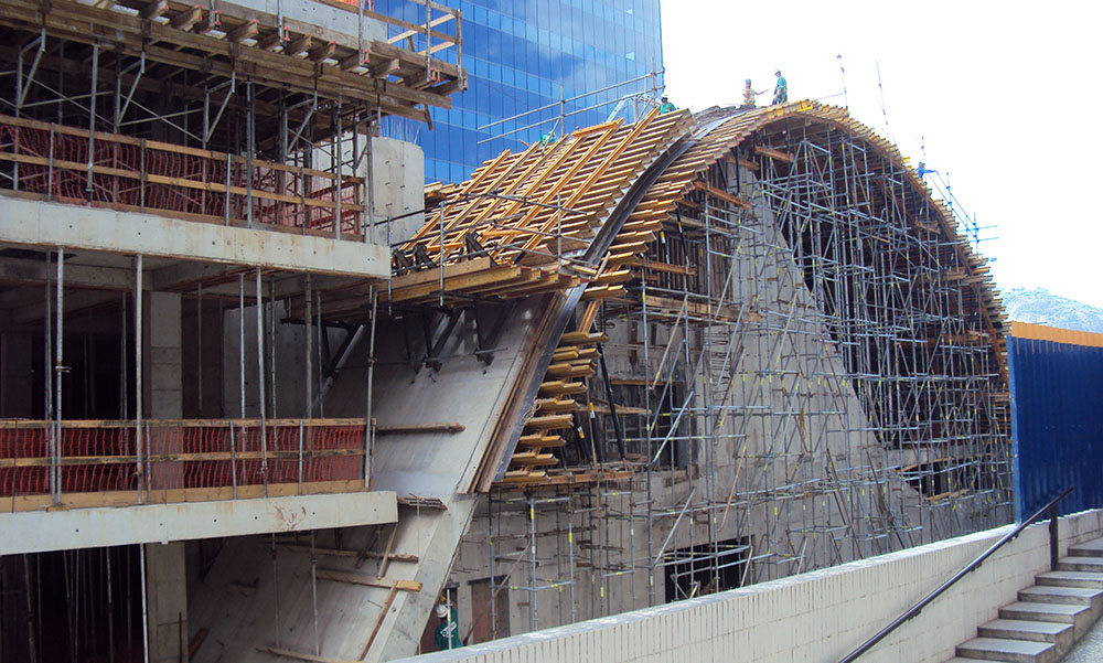 - Muntaketa segurua duen zinbria, aldamioa muntatzeko plataformekin.