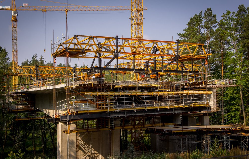 Argi handiko zubiak eraikitzeko egokia, pilareen altuera handia denean, edo lurraren gainean zurkaiztea konplexua egiten den zubiaren taulak daudenean. Oso sistema malgua eta errendimendu handikoa.