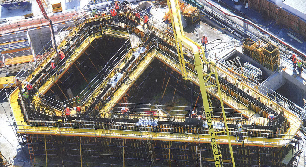 Erdiko gunea forjatu aurreko bi solairutan egin da, goratze sistema baten bitartez, 2000 Kontsolarekin eta ENKOFORM V-100arekin. Lauza asko RAPID enkofratu horizontalarekin eraiki ziren eta, kasuren batean edo beste, ENKOFLEX sistemarekin.