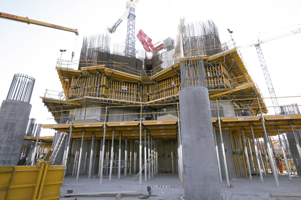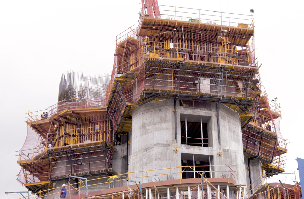 Igogailuen erdiko nukleorako, 6. solairutik gorako egituraren euskarria baita, ULMAk mota honetako etxe orratzak eraikitzeko teknologiarik aurreratuena jarri zuen obraren esku: ATRa