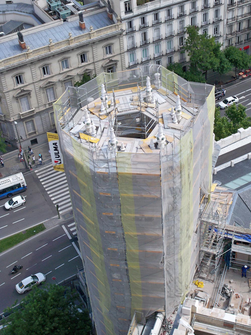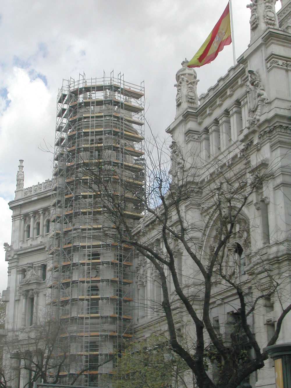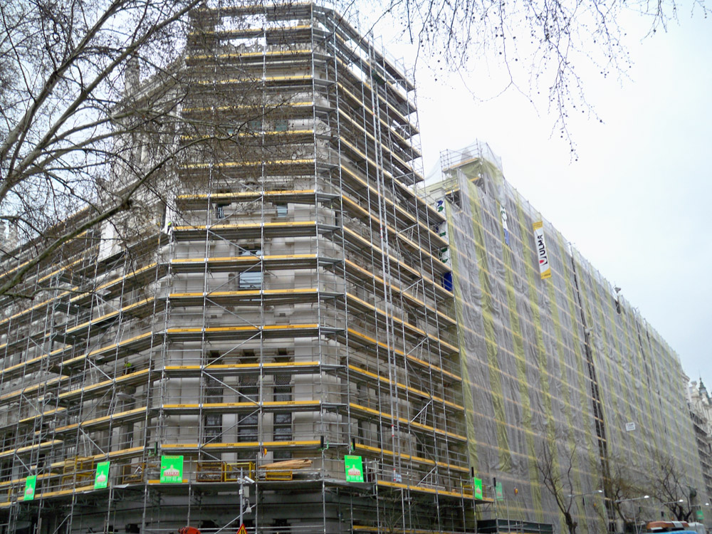 ULMAk egin zituen Madrileko eraikin enblematiko honen fatxada birgaitzeko lanak.
