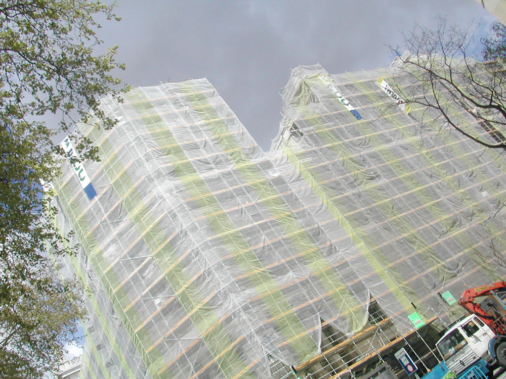 Dorreen alboko aurpegietara iristeko eta zorutik muntatu beharra ekiditeko, beharrezkoa zen hegalak zituen aldamio bat. BRIO Aldamio Multidirekzionalarekin egin ahal izan zen hori. Zorutik muntatzen ziren aurpegietan, DORPA aldamioa erabili zen, fatxadako lanetarako egokia baita. Bide publikoko inpaktua minimizatzeko, BRIO aldamioa instalatu zen eta horrek oinezkoentzako igarobideak prestatzea ahalbidetu zuen.