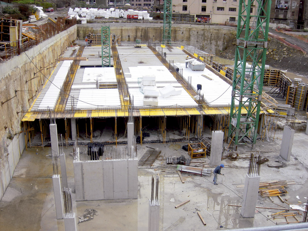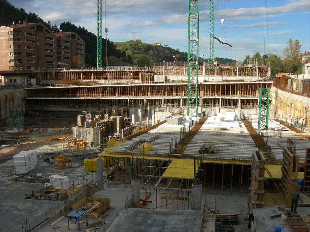 Egitura hormigoiz egin zen erabat: gainazal horizontalak lauza arinduekin, habexkek eta”porexpan”-ezko blokeek ostuak, eta bertikalak hormigoi armatuarekin.