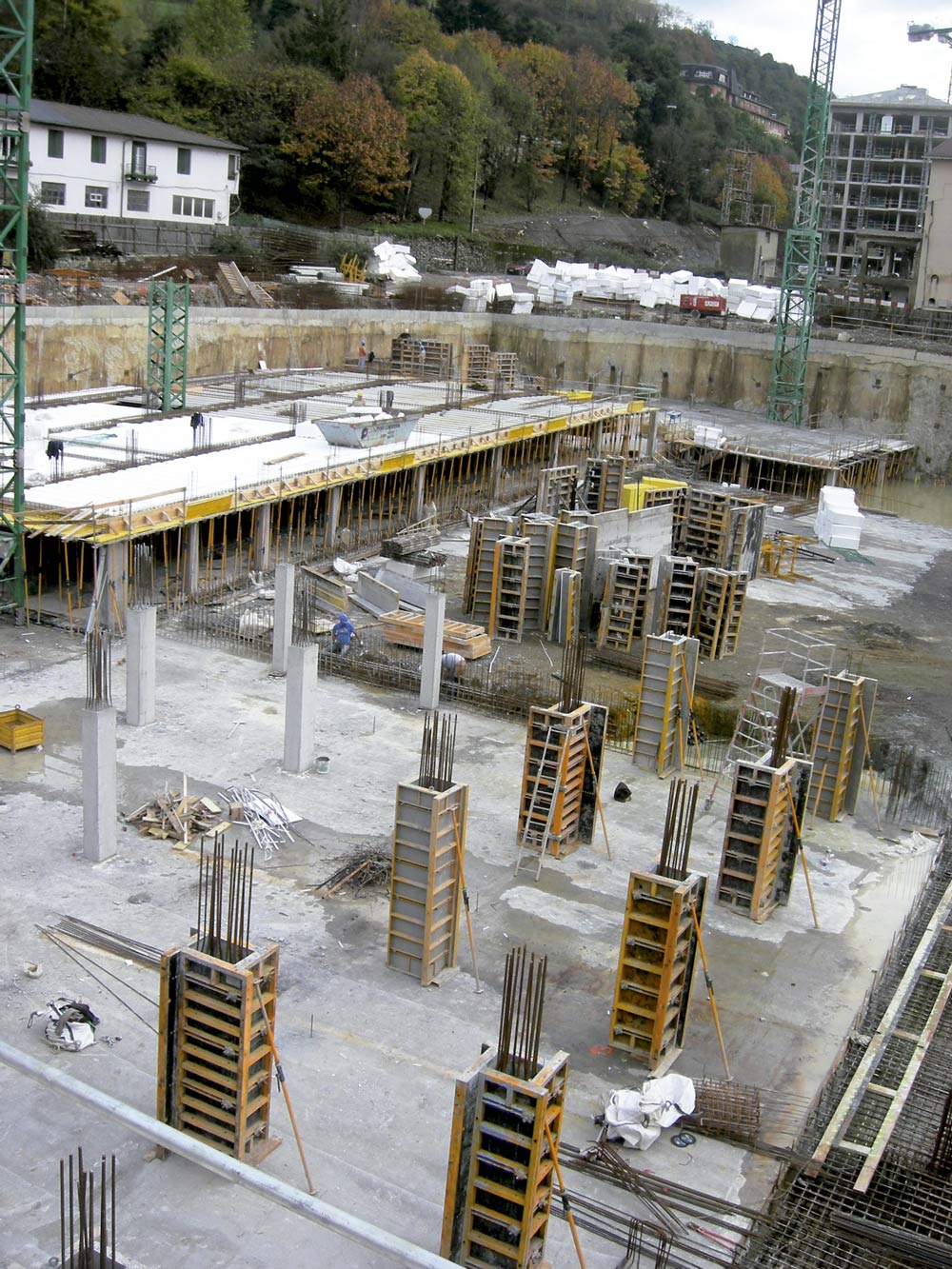 Neurri askotako pilareak ORMArekin eta pilareak enkofratzeko LGR sistemarekin egin ziren. Sistema honek, plastikozko gainazal enkofratzailearekin, arintasuna eman zuen manipulazioan eta ageriko hormigoizko akabera bikaina.