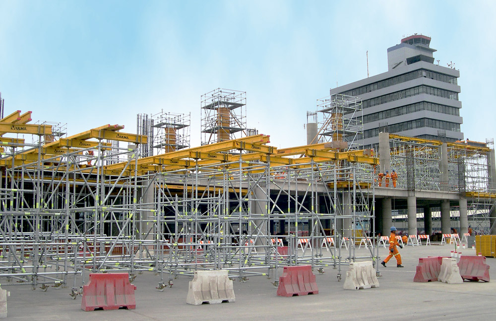BRIO Aldamio Multidirekzionalarekin posible izan zen lanak egitea aireportuaren jarduera eta bidaiarien joan-etorria eten gabe. Soluzio gisa, ingeniariek plataforma jarrai bat planteatu zuten, terminaleko egituraren goiko lauzatik esekitako aldamio batekin egina. Ainguraketa barra hariztatuekin egin zen, azkoin hexagonalekin estututako DU habeen bitartez kargak lauzara transmitituta. Guztira 6.000 m² estali ziren BRIO plataformarekin eta plataformaren 4.000 m² hiru geruzako taularekin. Aldamioak segurtasun mailarik handienak eduki zituen, bai langileentzat bai terminalaren erabiltzaileentzat, eta edozein geometriatarako egokitzeko gai zela erakutsi zuen.