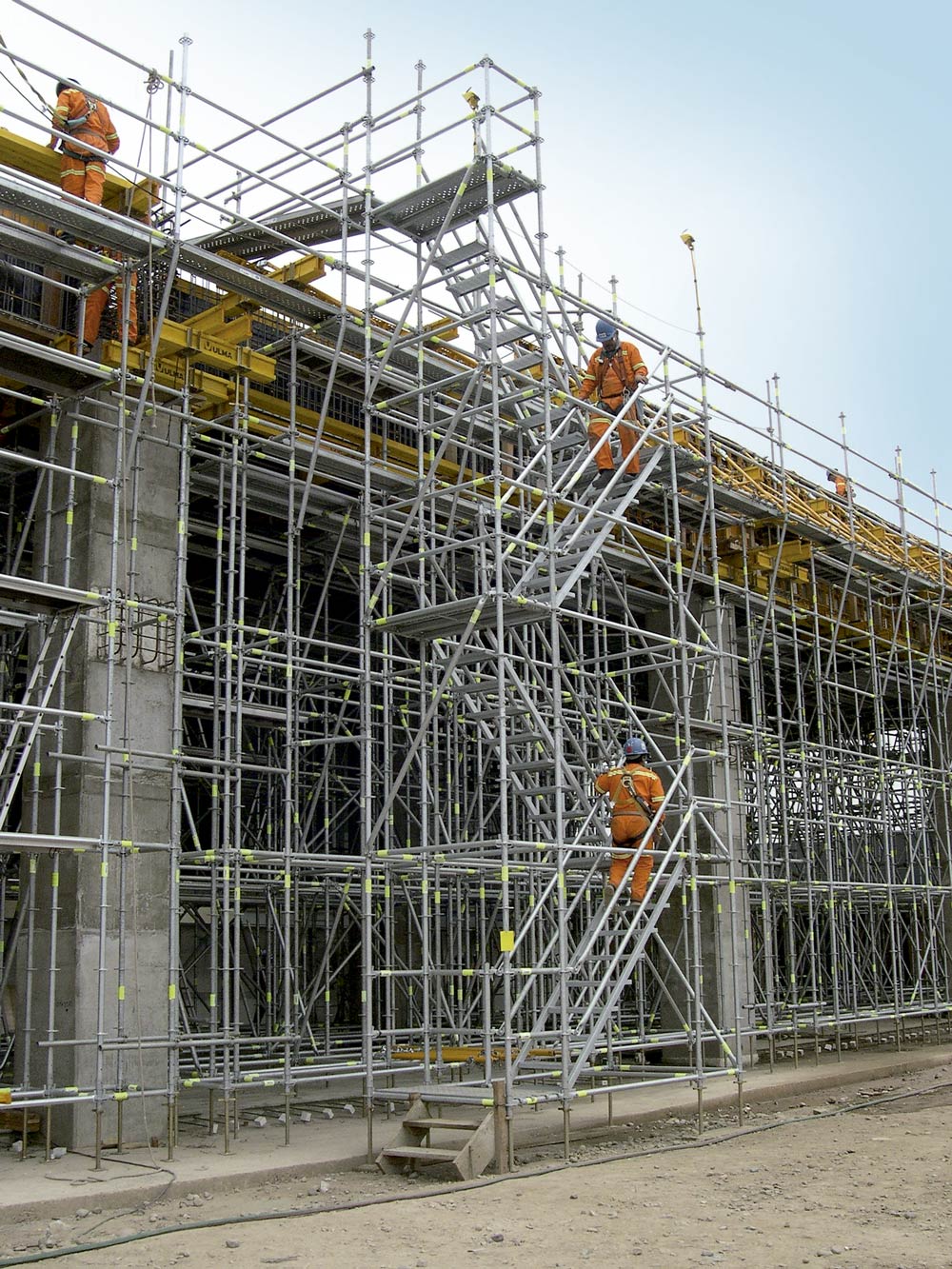 Gainera, BRIO sistema erabilik plataformak jarri ziren hainbat mailatan, itxitura hormigoizko blokeekin egiteko. Plataformek eskailerak zituzten egiten ari ziren egituretatik solairuetara iristeko behin-behineko modu gisa.
