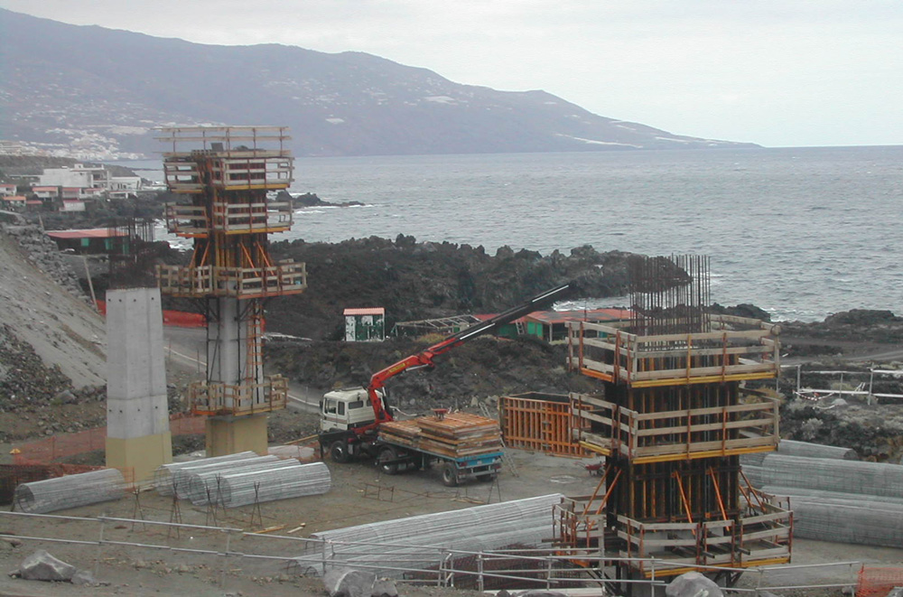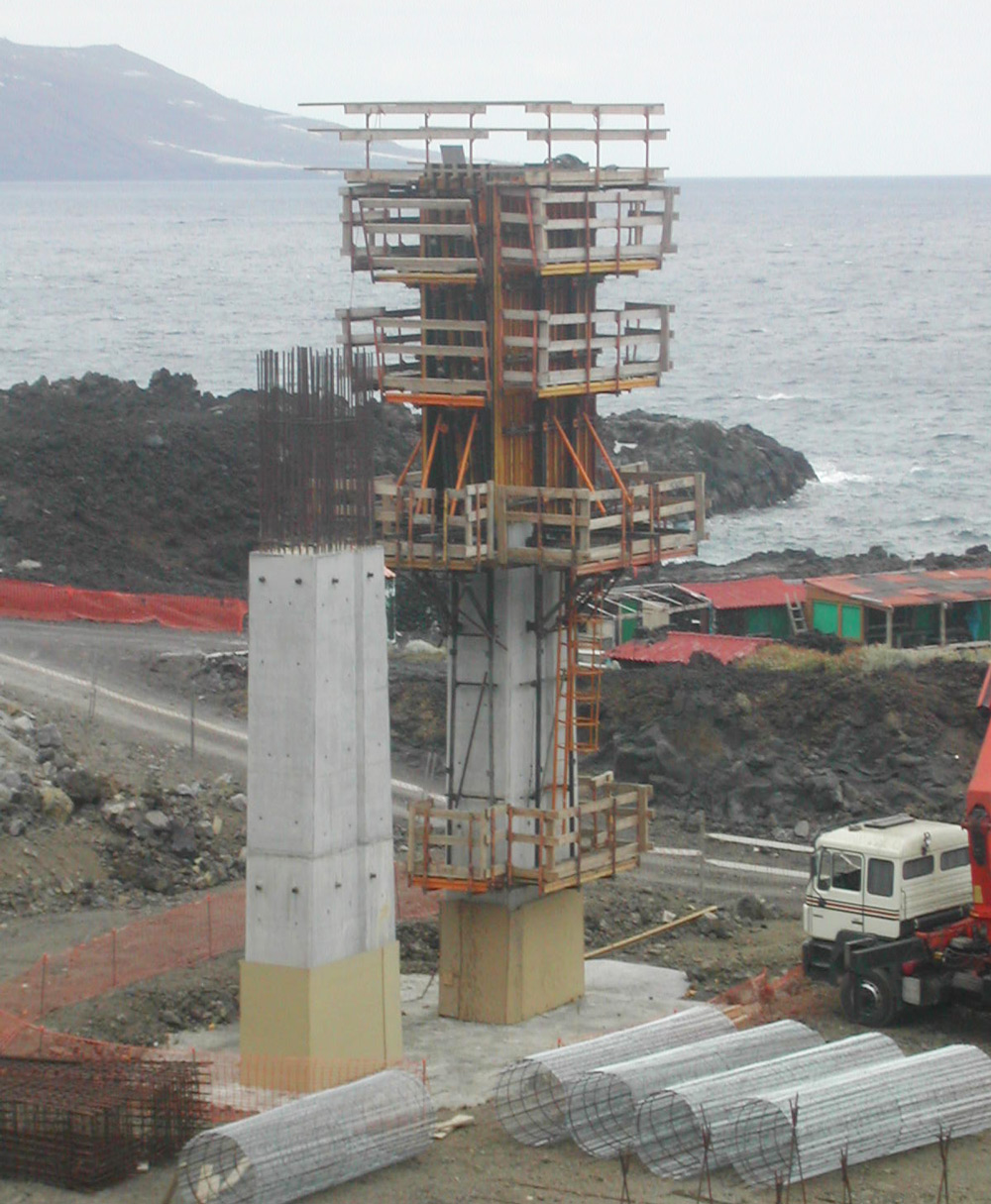 Aireportuko sarreretako pilareak egiteko goratze kontsola eta ENKOFORM V-100 enkofratua konbinatu ziren, modu ezin hobean. Multzo polibalente honekin irtenbidea eman ahal izan zitzaien obrako hainbat geometriari, beti elementu estandarrak erabilita.