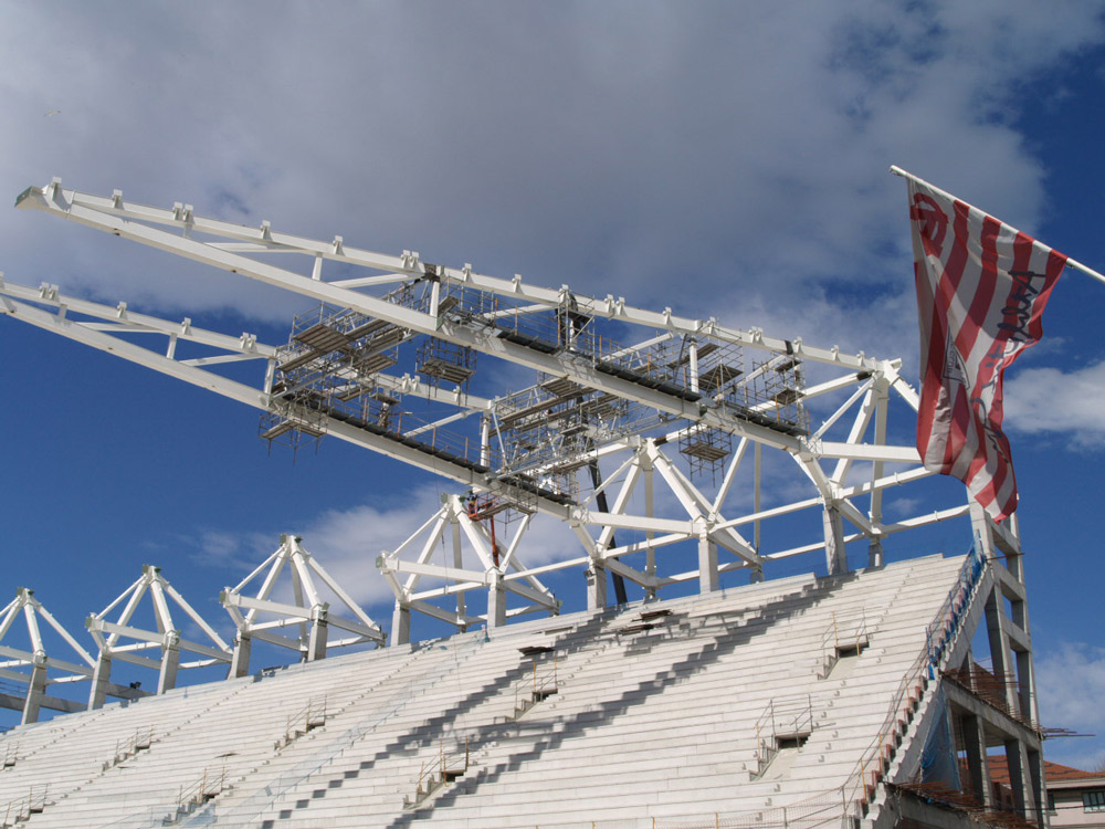 Fatxadaren zein estalkiaren itxitura beirazko azal batez eta metalezko profil bertikalez egingo da, estadioaren barrualdeari argi natural asko emanda. Gauez estaldura hori guztia tonu askorekin argituko da, eta partida egunetan zuri-gorriak izango dira nagusi.