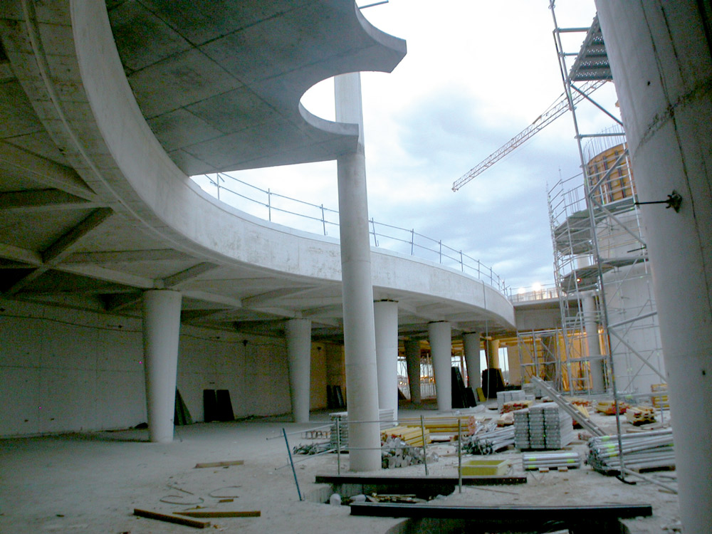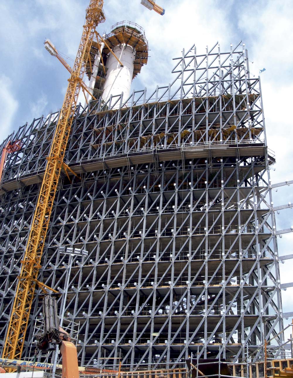 Proiektuaren bizkarrezurrak bi nukleo ditu, batetik bestera 20 metroko tartearekin. Nukleo horiek 8.000 m2 –ko kristalezko fatxadari eusten diote.Eraikina benetan berezia da, eta soluzio bereziak behar izan zituen. Hala, forma birbildu konplexuak lortzeko, obra horretarako bereziki egindako enkofratuak erabili ziren. Produktu horiek goratze sistemen gainean erabili ziren, horrela 70 metroko altuerara iristeko. Altuerako lanetan, berriz, tarteko forjatu txikiak behar izan ziren, zeinak zinbriekin eta BRIO Aldamio multidirekzionalarekin egin baitziren. Horrez gain, muturreko segurtasuna ere egon zen obra osoan.