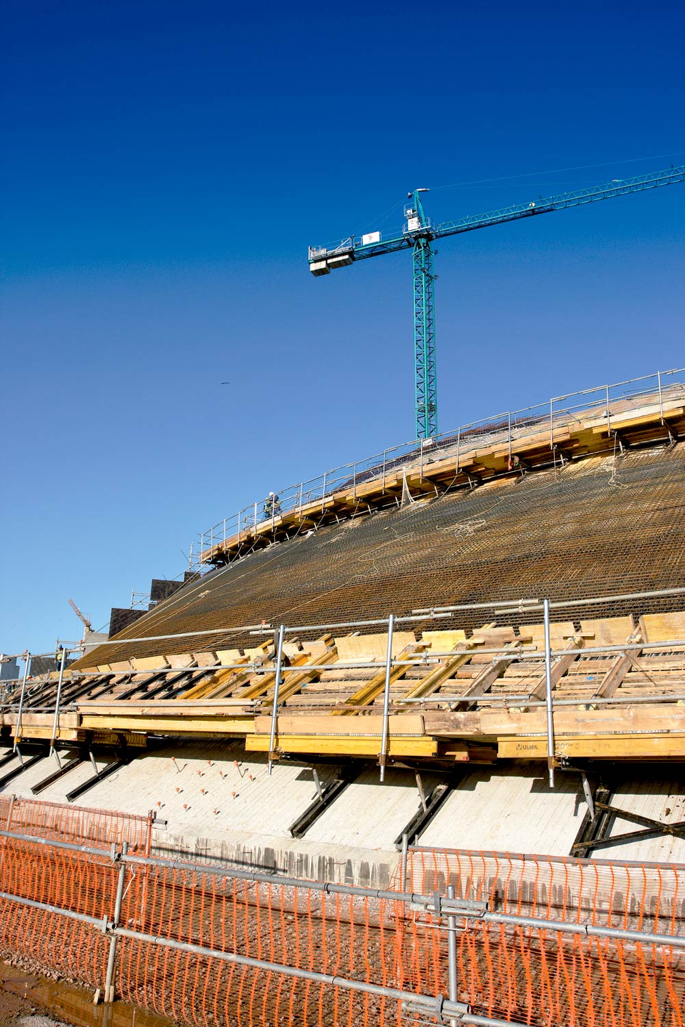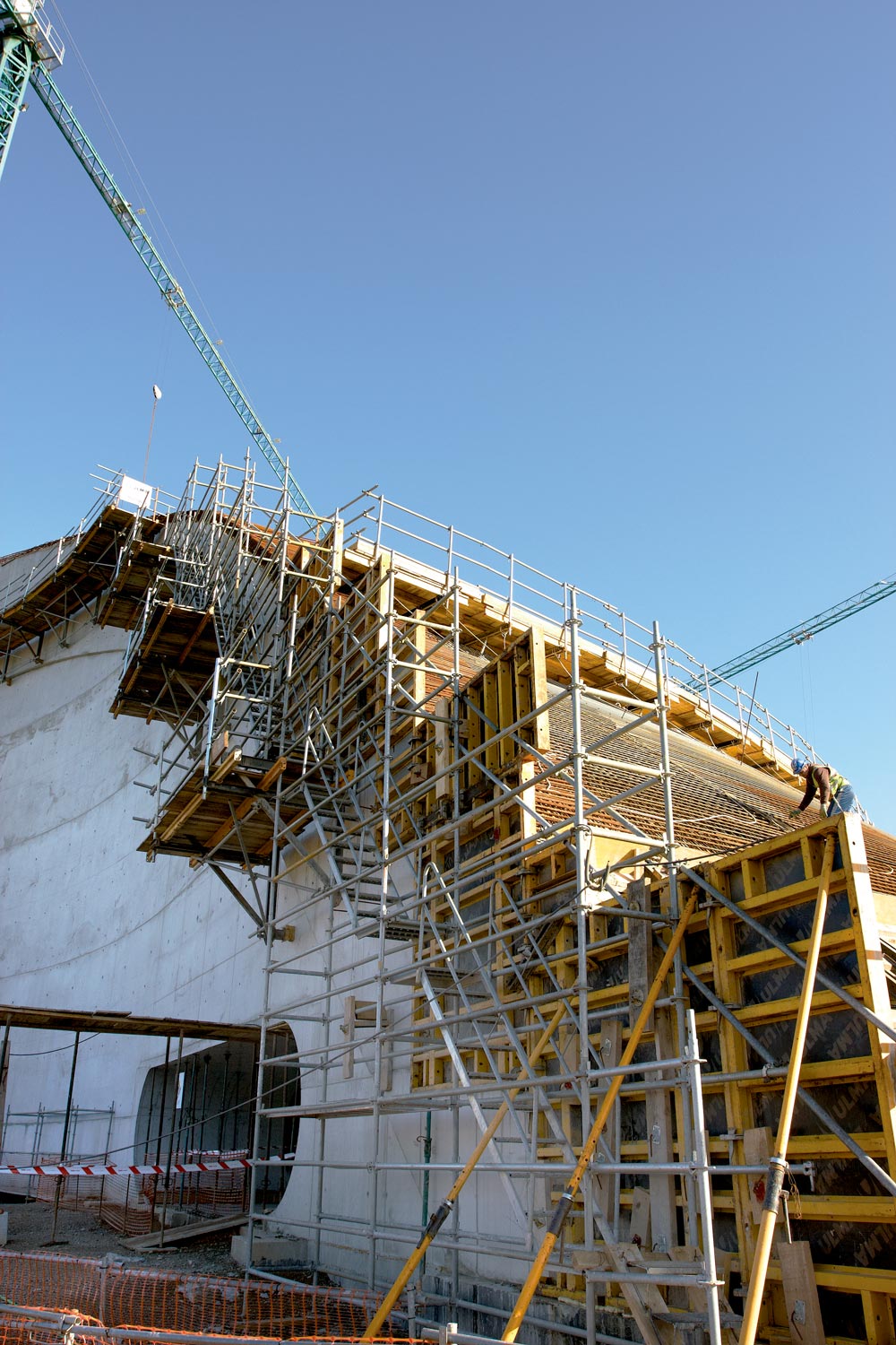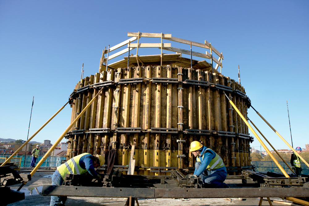 Eraikinen silueta ondulatuak direla-eta beharrezkoa izan zen azterketa zehatza egitea hormetarako soluzioa bilatzeko, zuzenak zein kurboak baitziren, eta ageriko hormigoizko akabera ezin hobea emateko. Horma zuzenak ORMA Enkofratu Modularraz egin ziren, eta geometria aldakorreko horma kurbatuetarako, berriz, ENKOFORM V-100 sistema proposatu zen. Horrela produktu biei atera zitzaien etekina, graba berbera erabiliz konbinatu ahal ziren eta. Taula fenolikoko enkofratuaren azalerarekin kasuan-kasuan beharrezkoak ziren akaberak egin ziren.