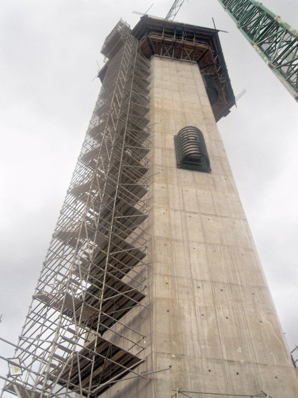 Hartune dorrea, zeinak balbulen ganberarekin batera 90 metroko altuera egiten baitu, 2 metroko altuerako goratzeekin egin da, 2000 Kontsolaren bitartez, eta ENKOFROM V-100 egurrezko habeen enkofratuarekin horma zuzenetan. Dorrearen goiko aldeko hormetarako, azken 10 metroetan 13,5 metroko diametroa duen forma zilindrikoa baitu, FLECTOR enkofratu zirkularra erabili da.