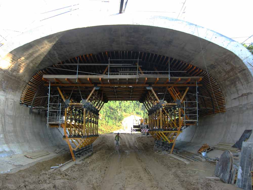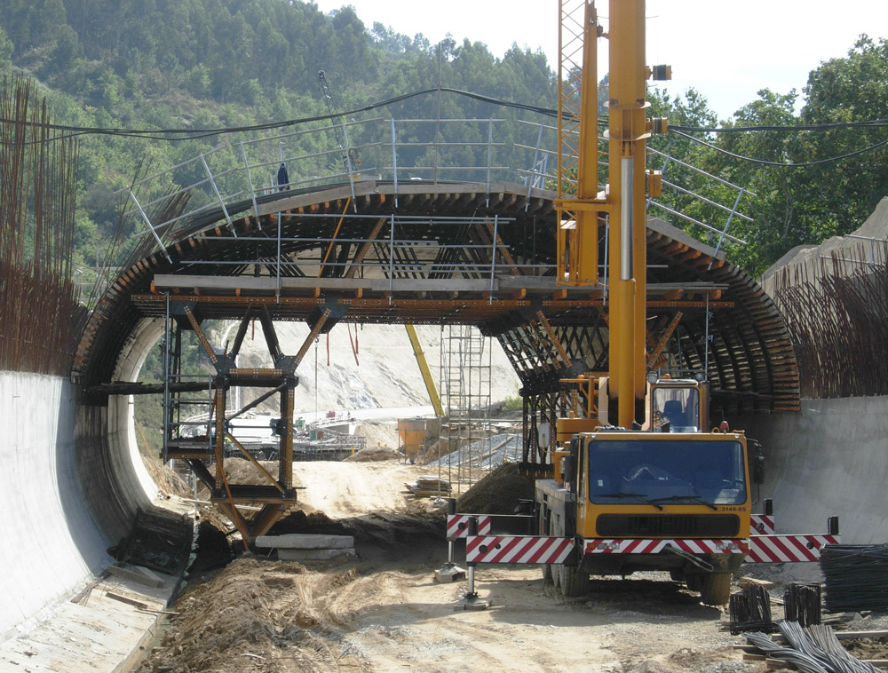 Tunel aizuna bi hormigoitze fasetan egin zen: horma pikoak eta ganga.