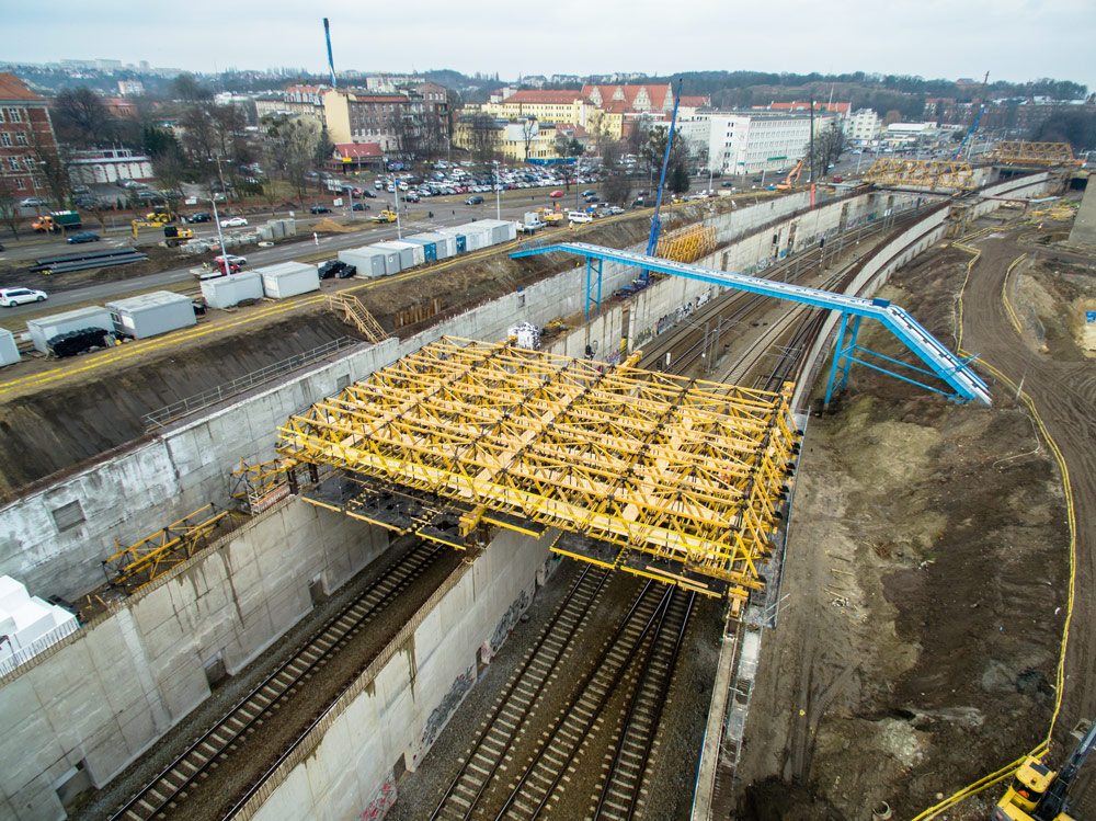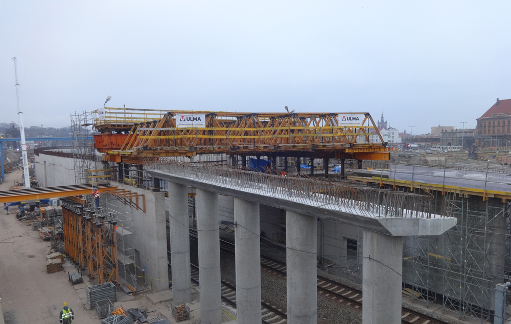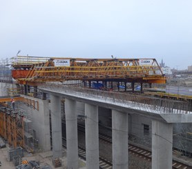 Lauzen enkofratua zertxetatik zintzilika jarri da, katenarien artetik igo eta jaitsi ahal izateko, tren instalazioak oztopatu gabe. Sistema horrekin muntaketa eta hormigoitze lanen denbora murriztu da, in situn egin baitira.