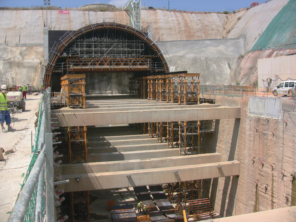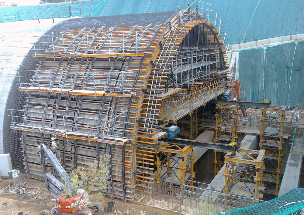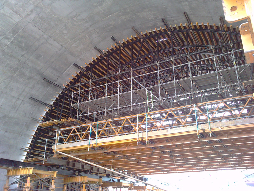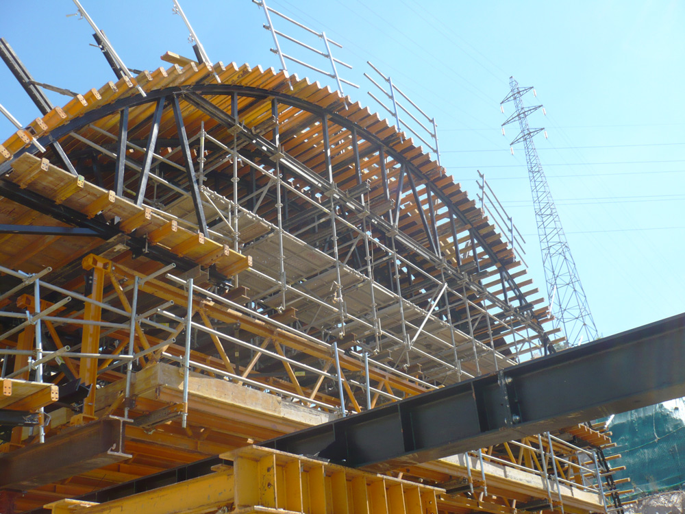 Lanak 17 m-ko altueran egin ziren, beheko solairuan metroa dabilelako eta tarteko lauzak lodiera txikikoak direlako. Zinbria gogortuaren sistema erabiltzerik ez zegoenez, irtenbide tekniko konplexu hau planteatu zen: altuerako enkofratu orga eramaile batetik abiatuta eta T-500 Zinbrian, H-33 Egituretan, BRIOn eta txarrantxa kurbatuetan bermatuta, hormigoizko errefortzu transbertsalak gainditu ziren 5,2 metrotik 5.2 metrora.