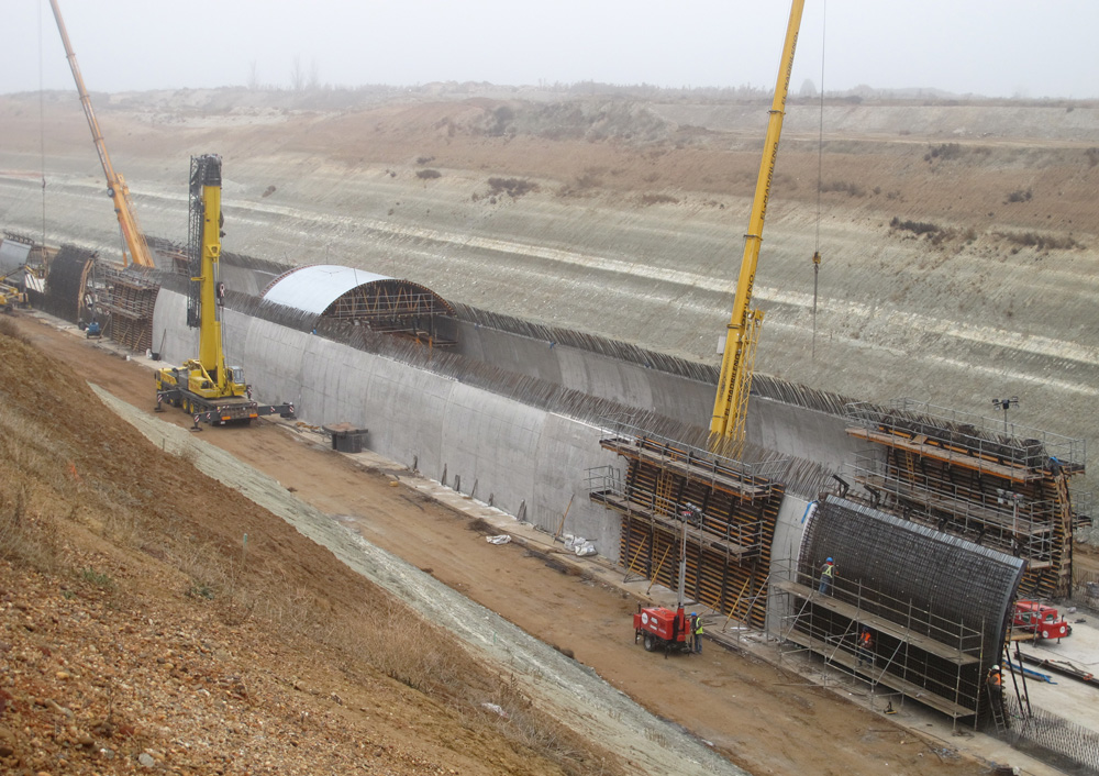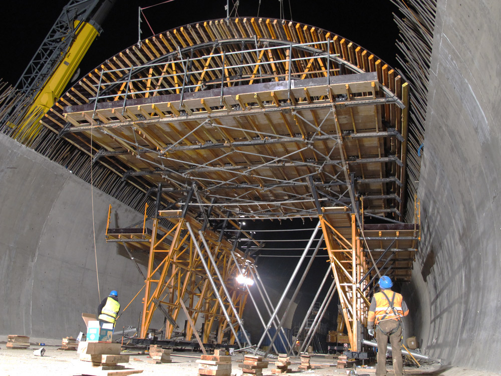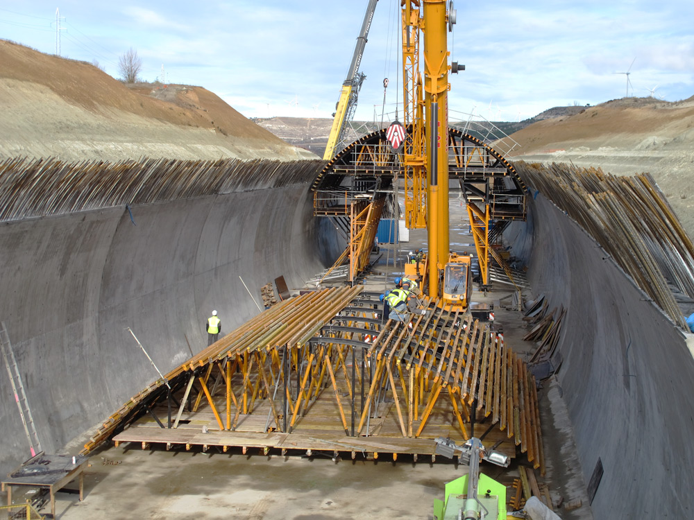 Lurzorua buztintsua bazen ere, soluzioak markatutako epea betetzea ahalbidetu zuen, hornidura eta muntaketa zehatz-mehatz planifikatu baitziren. ULMAko ingeniaritza arloak bi orga arin proiektatu zituen enkofratuaren azalera handi bat eta obran zeuden bitarteko osagarriak garraiatzeko. Errodadura sistemei esker tunelaren sekzio osoa 12,5 m-ko zatietan egin ahal izan zen, orgaren konfigurazioa aldatu gabe. Azterketa teknikoaren ondoren, ULMAk pentsatu zuen tunelaren erdiko aldetik hastea zela proiektua optimizatzeko modurik hoberena. Hortik, orga biak kontrako noranzkoan egin zuten aurrera, tunelaren muturrerantz, eta horrela tunelaren ganga egin zen, aldi berean horma pikoak enkofratuta. Lana sinkronizatuta egiteak denbora asko aurreztea ahalbidetu zuen zati bakoitzean. Produktu berberarekin, ENKORFORM produktuarekin, gangaren eta horma pikoen geometria kurbatuak lortu ziren.