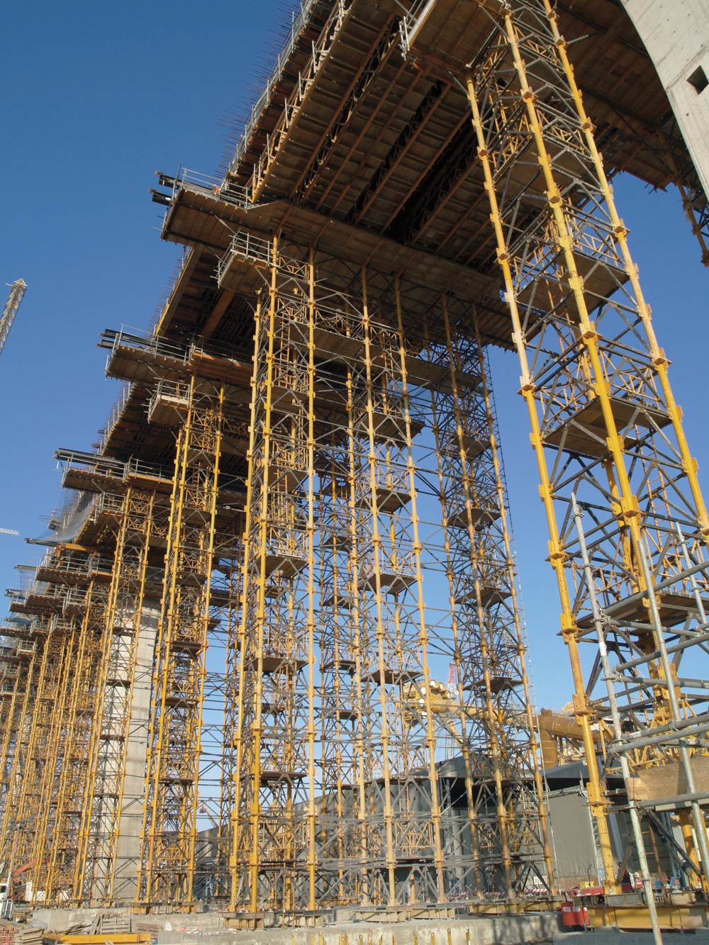 Bi zati horietan, hondoko enkofratuak inklinazio aldakorra zuen, eta horregatik diseinatu ziren horma atalak hiru zati artikulatutan. Horrela posible izan zen zati osoa egitea fase bakoitzean geometria ukitu beharrik eduki gabe.
