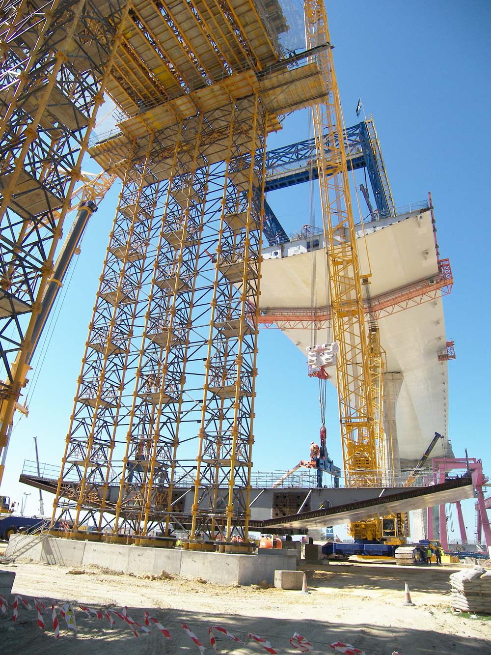 Lehen zatiak, 380 metro dituenak eta estributik hurbil dagoenak, 9 pilare ditu 40 metroko baoekin. Zati hori 10 fasetan egin da, bakoitza 40 metro ingurukoa izanik. Fase ereduaren barruan bao baten ¾ -ak sartzen ziren, eta hurrengo baoaren ¼ -a, zeina hegal eran geratzen baitzen. 2 metroko taularen sekzio finko batekin, hormigoitze lana aldi bakarrean egin da. Zati horretarako, zinbria gogortuen sistema bat planteatu da, zeinarekin sendotasun, segurtasun eta malgutasun berme guztiak eskaintzen diren, eta sistema horrekin batera ENKOFORM H-120 zubien enkofratua ere bai.
