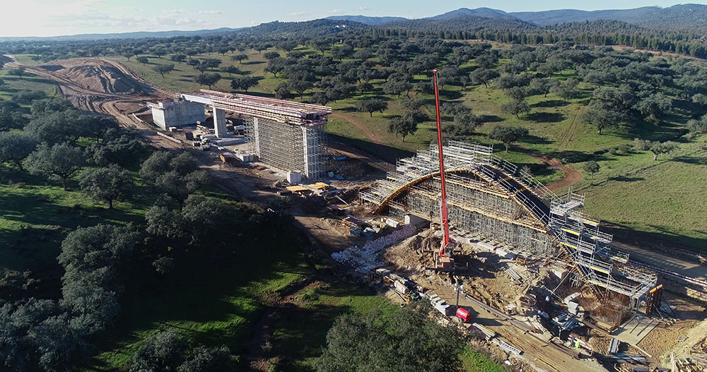 Freixo - Alandroal zatiak 10 biaduktu eta 16 gaineko pasabide ditu. Ekipo ugari hornitzeaz gain, errentagarritasuna segurtasunaren eskutik joan da. Dagozkien taulak eraikitzeko 20.000 m³ OC zinbria hornitu dira, eta 4.000 m² inguru ENKOFORM enkofratu. 3.600 m² ORMA enkofratu jarri genituen, eta pilare eta zapatetarako 10 enkofratu multzo, ENKOFORM eta ORMA enkofratuak konbinatuz, bai eta 280 metro eskailera eta 10.500 m² BRIO aldamio ere.