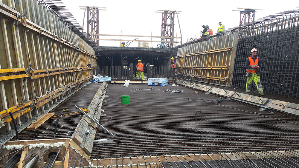 Para la construcción de la losa superior se ha empleado el encofrado HMK sobre carros VR. De esta manera el traslado de 30 m de encofrado ha sido una tarea sencilla. La solución ofrecida por ULMA ha permitido ejecutar 30 metros de tablero en solo 7 días.