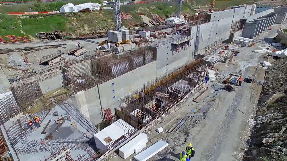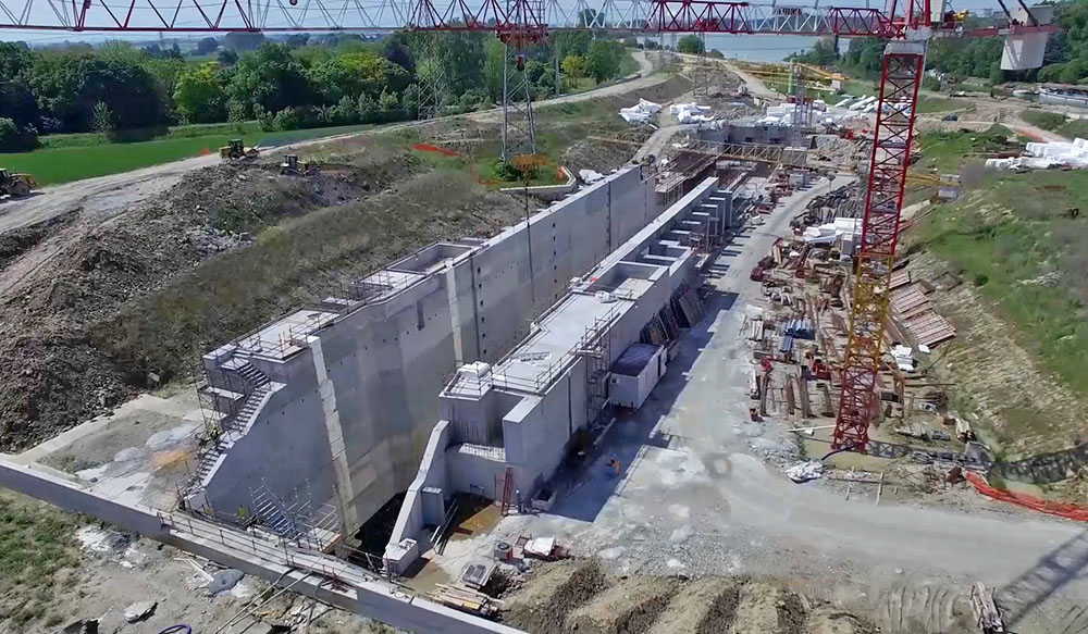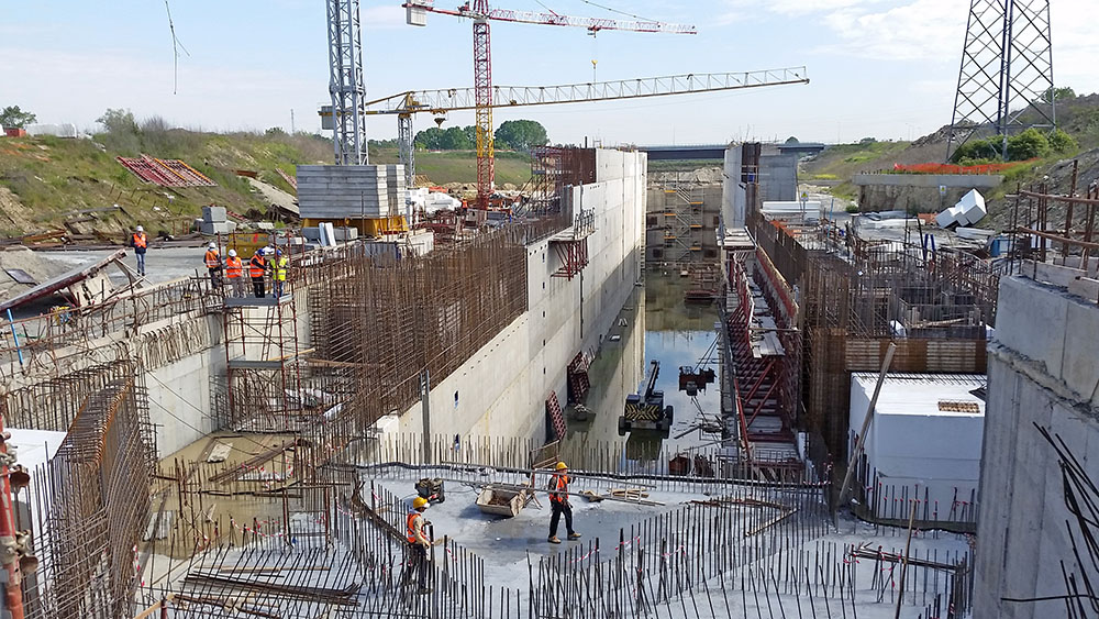 Al tratarse de un espacio fluvial y para evitar debilidades en la estructura se ha construido la dársena de forma monolítica y sin juntas. En 4.000 m2 se ha ejecutado esta estructura de 115 m x 12,50 m y una profundidad de 23 m en los huecos laterales.
