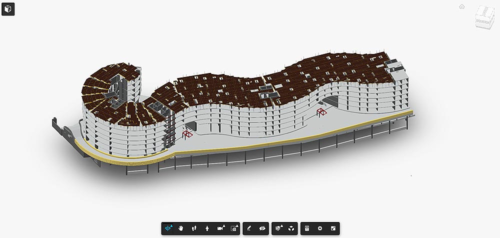 BIM metodologia erabiltzeak bezeroarekin etengabe elkarreragiteko aukera eman du, 3Dko proiektuan lauzako enkofratua aplikatzeko. Proiektu berezien aurrean (hegal handiak), sistema horrek erraztu egin zuen ULMAk planteatutako soluzioa bistaratzea, hau da, lauza batzuk, zeintzuek postenkatuak zirenez lan plataformak eskatzen baitzituzten. Horrek edozein arazo 3D formatu bisual ulerterrazean konpontzeko aukera eman zien.