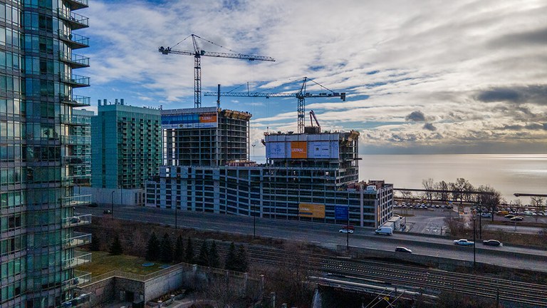 ULMA ha trabajado en colaboración con el cliente para proporcionar protección perimetral en las tareas de construcción de los dos edificios por encima de la autopista Gardiner. El sistema protege 3 niveles de pisos contra las inclemencias meteorológicas y la caída de objetos. Otra de las ventajas del sistema autotrepante es la existencia de las plataformas de trabajo que ayudan a la colocación del encofrado.