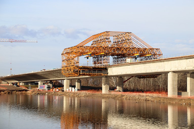 ULMAk ingeniaritza soluzioak eta taula hegalak, zero dobelak eta pilareak egiteko eta materiala jarri ditu. Taularen hegalak egiteko, zubi mistoetarako hiru MK enkofratze orga erabili ditu, MK sistemaren elementu estandarrez osatuak. Konponbide estandarizatua eta neurrira egindakoa eskaini duenez, taularen dimentsio handietara (34,5 m-ko zabalera) egokitu ahal izan da, eta, horrela, errentagarritasunik handiena bermatu. Orga horiei esker, 10 metroko hegalak hormigoiztatu ahal izan dira, 20 metroko tarteetan eta batez beste 5 eguneko zikloan jartze bakoitzean.