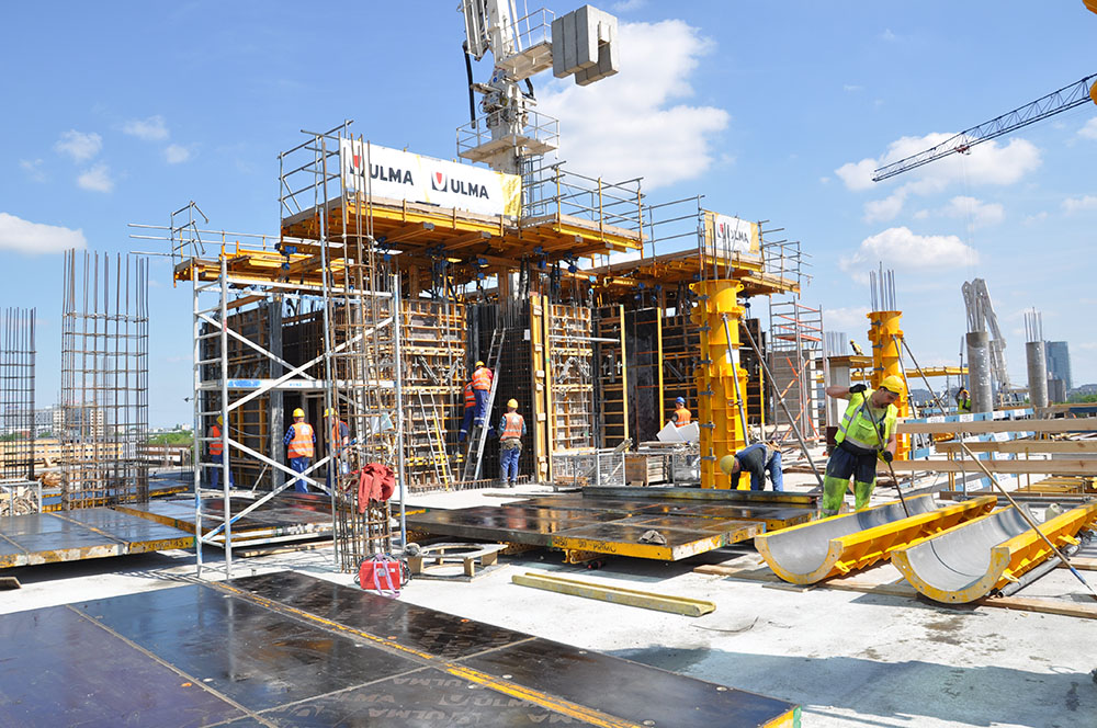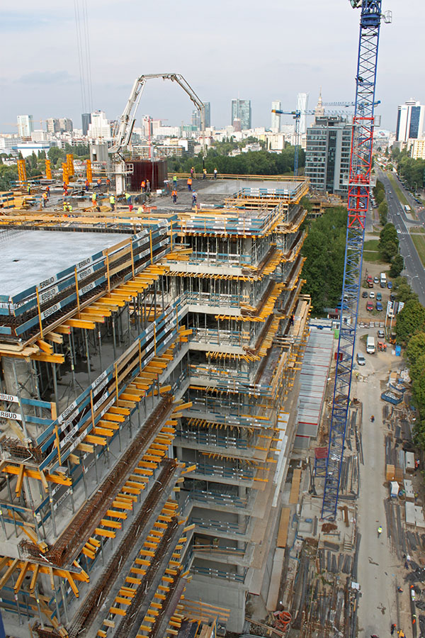 Gracias a los sistemas autotrepantes se ha realizado una rápida ejecución de los dos núcleos del Complejo EuroCentrum en Polonia.