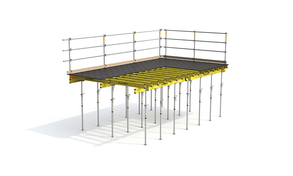 El caso práctico proponía la utilización del encofrado de vigas de madera ENKOFLEX y el encofrado de losa modular de aluminio CC-4 de ULMA para resolver la ejecución de una estructura de hormigón de tres plantas.